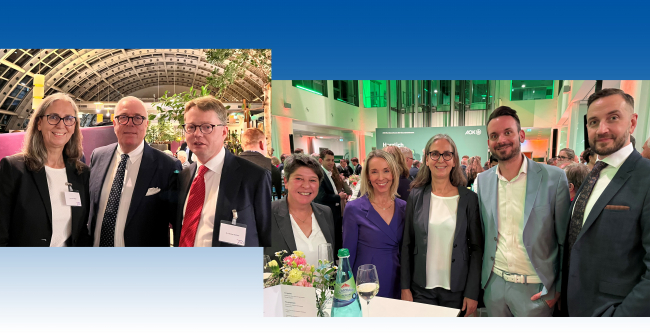 Ihren Berlinaufenthalt nutzte die IFK-Vorstandsvorsitzende außerdem, um gemeinsam mit Dr. Björn Pfadenhauer, IFK-Geschäftsführer, am darauffolgenden Abend das Herbstfest der AOK zu besuchen. Vor rund 300 Gästen aus Politik, Verbänden und Krankenkassen, darunter Dr. Christos Pantazis, gesundheitspolitischer Sprecher der SPD-Bundestagsfraktion, eröffnete die Vorstandsvorsitzende des AOK-Bundesverbands, Dr. Carola Reimann, die Feierlichkeit.