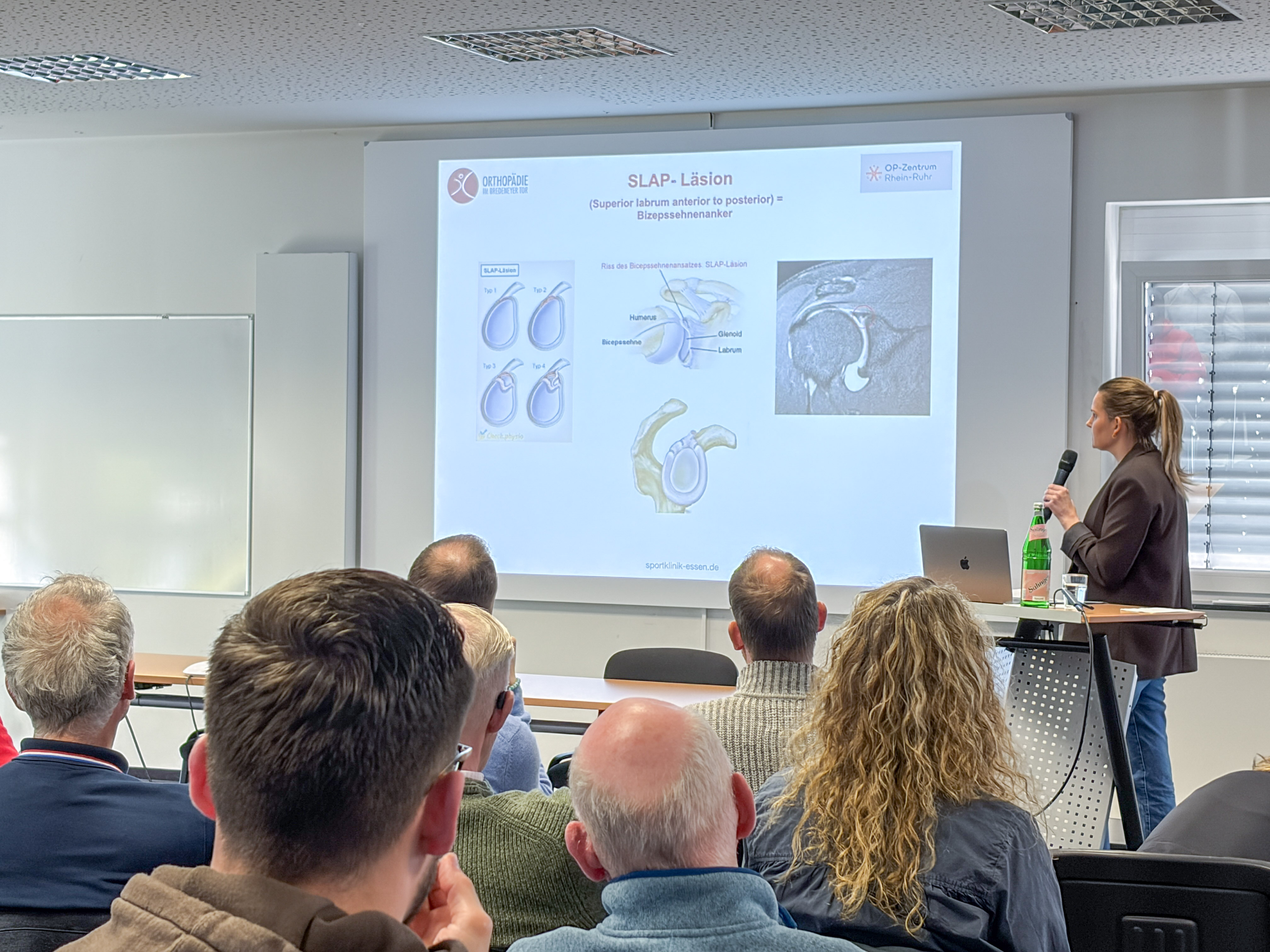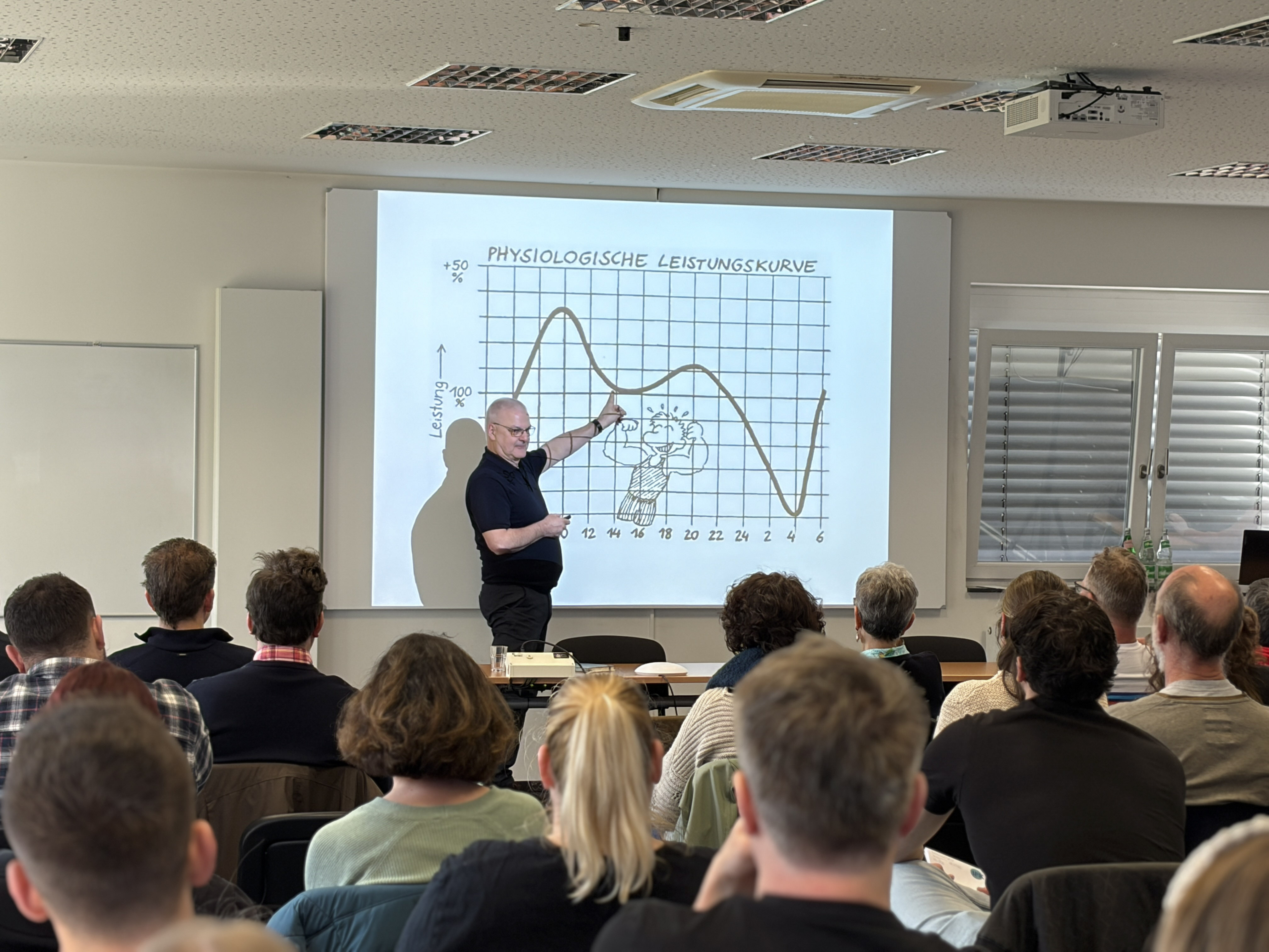 Bereits kurz nach dem Einlass hatte sich das Fortbildungszentrum gut gefüllt, über 70 Teilnehmende kamen schließlich trotz Sonnenscheins, Sonntags und eines offiziellen Endes von 16:30 Uhr zusammen. Darunter bekannte und neue Gesichter, frisch ausgelernte Physiotherapeuten und „alte Hasen“ sowie zahlreiche Mitglieder, die bereits die JHV am Vortrag besucht hatten.